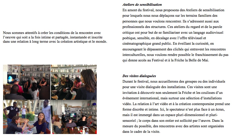 Si vous avez besoin de précisions, ou si vous voulez un accueil spécifique, n’hésitez pas à prendre contact avec Catalina Cuevas : publics@instantsvideo.com ou tel.04 95 04 96 24.