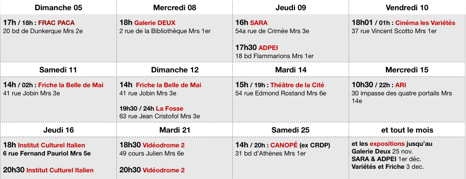 Où et quand nous retrouver à Marseille en novembre ?