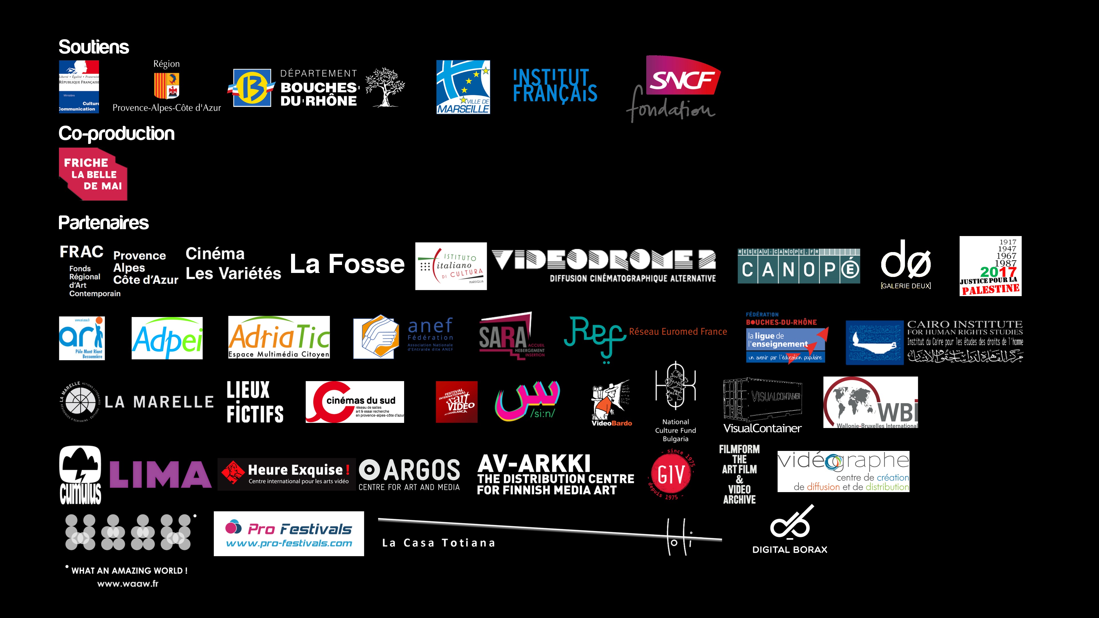 FRAC PACA, Galerie Deux, SARA, ADPEI, Friche la Belle de Mai, Vidéodrome 2, Canopé