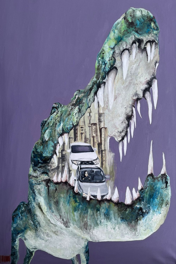 « Rak Bent » est une expression couramment utilisée dans le dialecte libyen pour rappeler à une fille les limites qui lui sont imposées simplement parce qu’elle est une femme. Le projet explore le droit des femmes libyennes à la ville, en se concentrant sur Benghazi, un espace façonné par des valeurs sociales profondément enracinées qui régissent la présence des femmes dans l’espace public. À travers une série de peintures à l’huile combinées à des techniques mixtes, l’œuvre explore les frontières visibles et invisibles qui façonnent les mouvements, la liberté et le sentiment d’appartenance des femmes dans l’environnement urbain. En traduisant ces structures sociales en compositions visuelles superposées, le projet réfléchit à la tension entre espace privé et espace public, révélant comment la ville elle-même peut devenir à la fois un lieu de restriction et un champ de négociation pour la présence féminine.