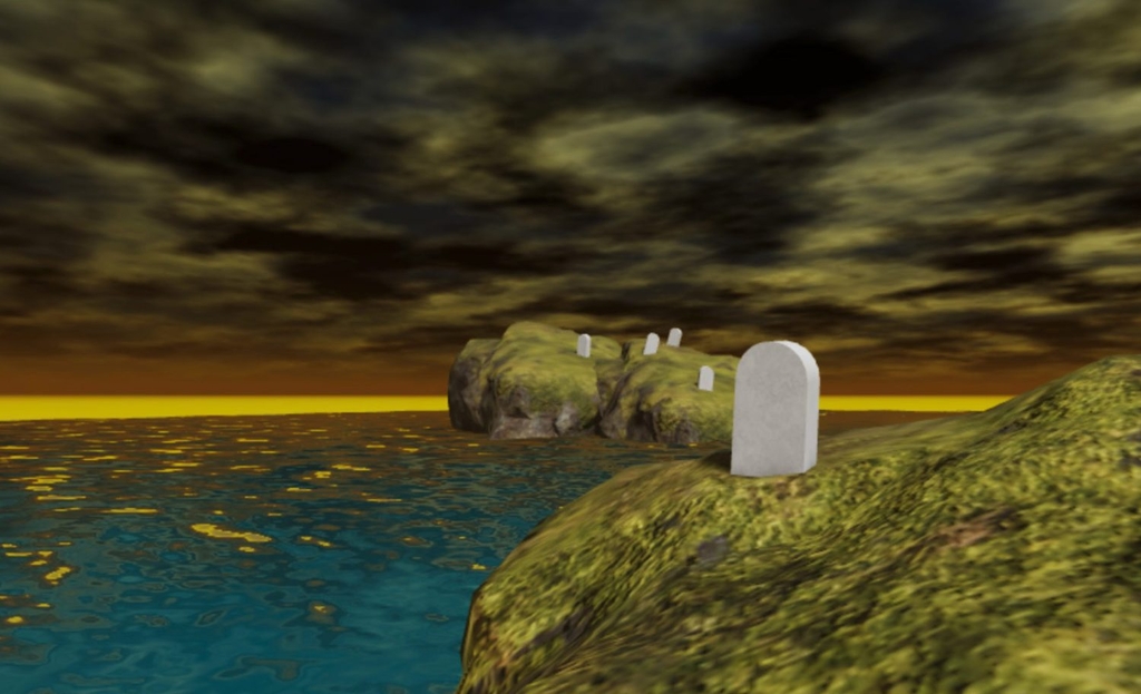 Installation artistique qui utilise un jeu vidéo pour explorer la mémoire de l’immigration nord-africaine post-coloniale. Le spectateur y incarne un joueur parcourant un archipel méditerranéen brumeux, ou se trouve un cimetière fictif dédié aux victimes de la guerre des noms concept du philosophe Quentin Mur qui désigne l’effacement colonial des lieux, identités et histoires. L’expérience repose sur la retoponymie : renommer un lieu devient un geste symbolique matérialisé par l’activation de tombes-poèmes, chacune représentant un nom oublié.