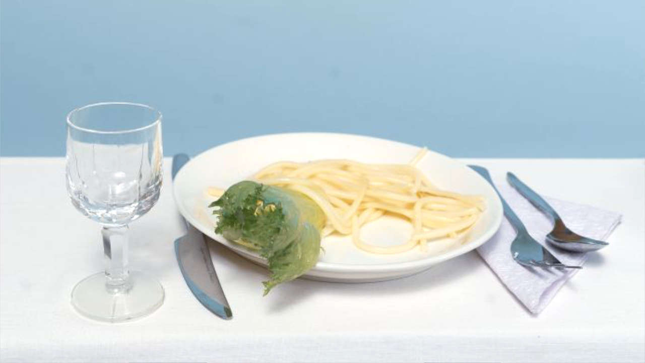 In this speechless video, a dinner is laid on the table. Arriving guests are creatures that are typically found on the plate. The work aims to present this farm animal as an equal to humans, even though the situation, and the perspective, is human-centred.