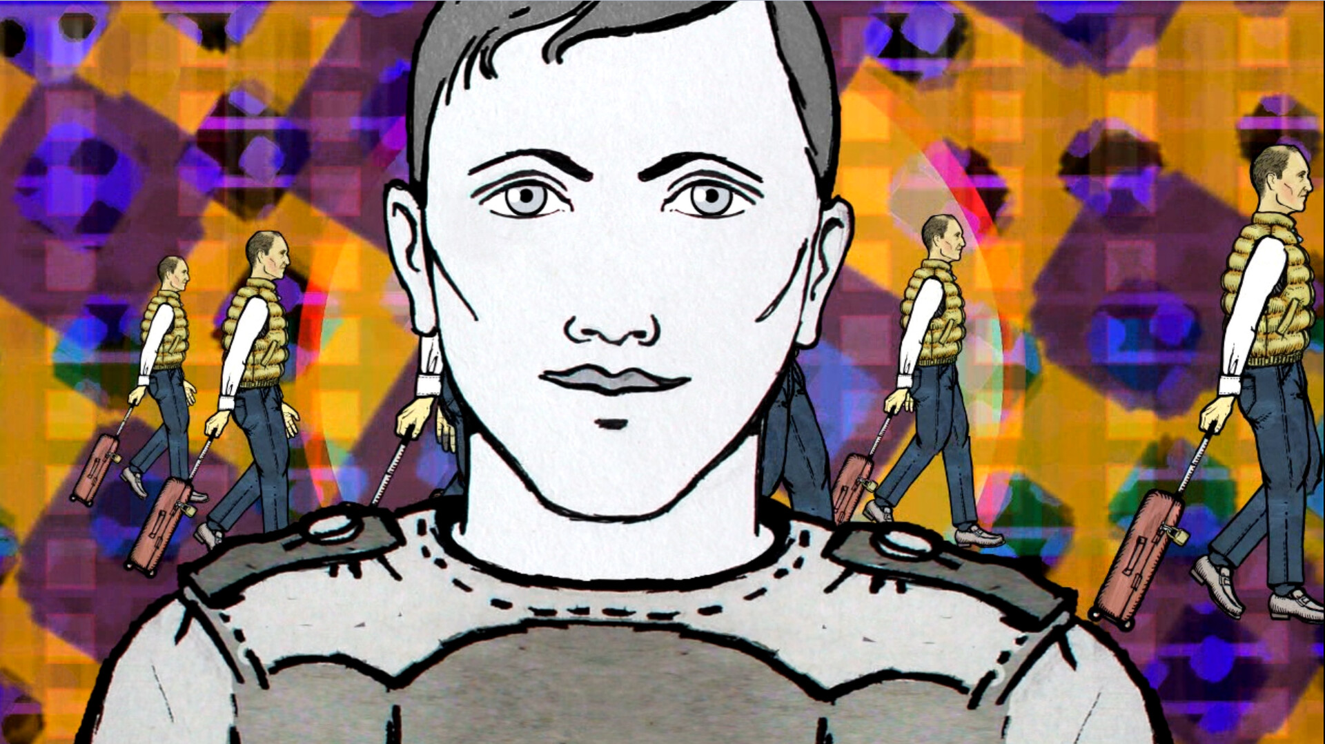 À l’aide d’animations 2D traditionnelles, j’aborde la question du tourisme et de sa massification. Dans de nombreuses villes, il est devenu une activité lucrative pour une minorité et un véritable problème pour la majorité des habitants. On observe une prolifération d’appartements touristiques, où les fêtes sont fréquentes, et la surpopulation des centres historiques, entraînant une gentrification des habitants et des commerces locaux, les transformant en parcs d’attractions. De nombreuses plages sont envahies par les touristes, ce qui efface l’essence même du lieu. Trouver un juste milieu où touristes et habitants puissent profiter et vivre en paix est l’un des objectifs à atteindre.